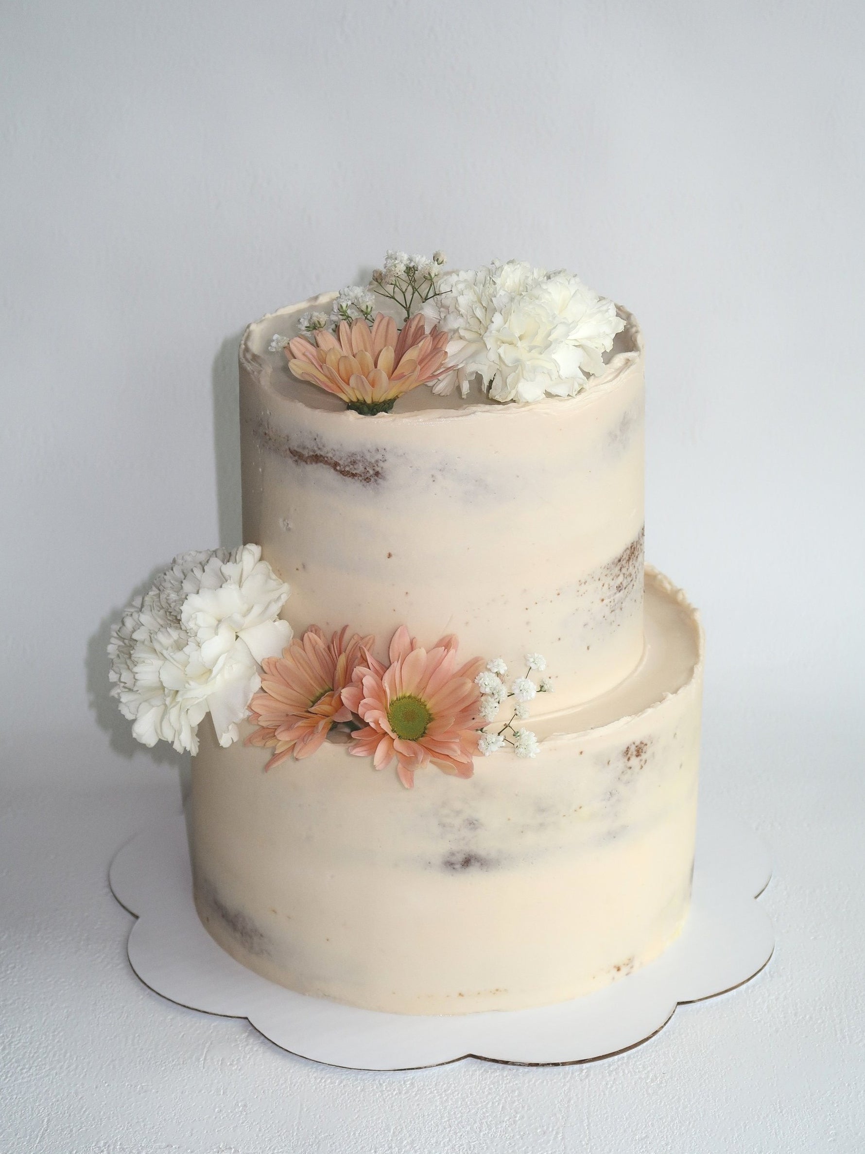 Lisää halutessasi kakkuun kukkia. Voit kirjoittaa toiveet kukista ostoskorivaiheessa olevaan lisätiedot osioon.