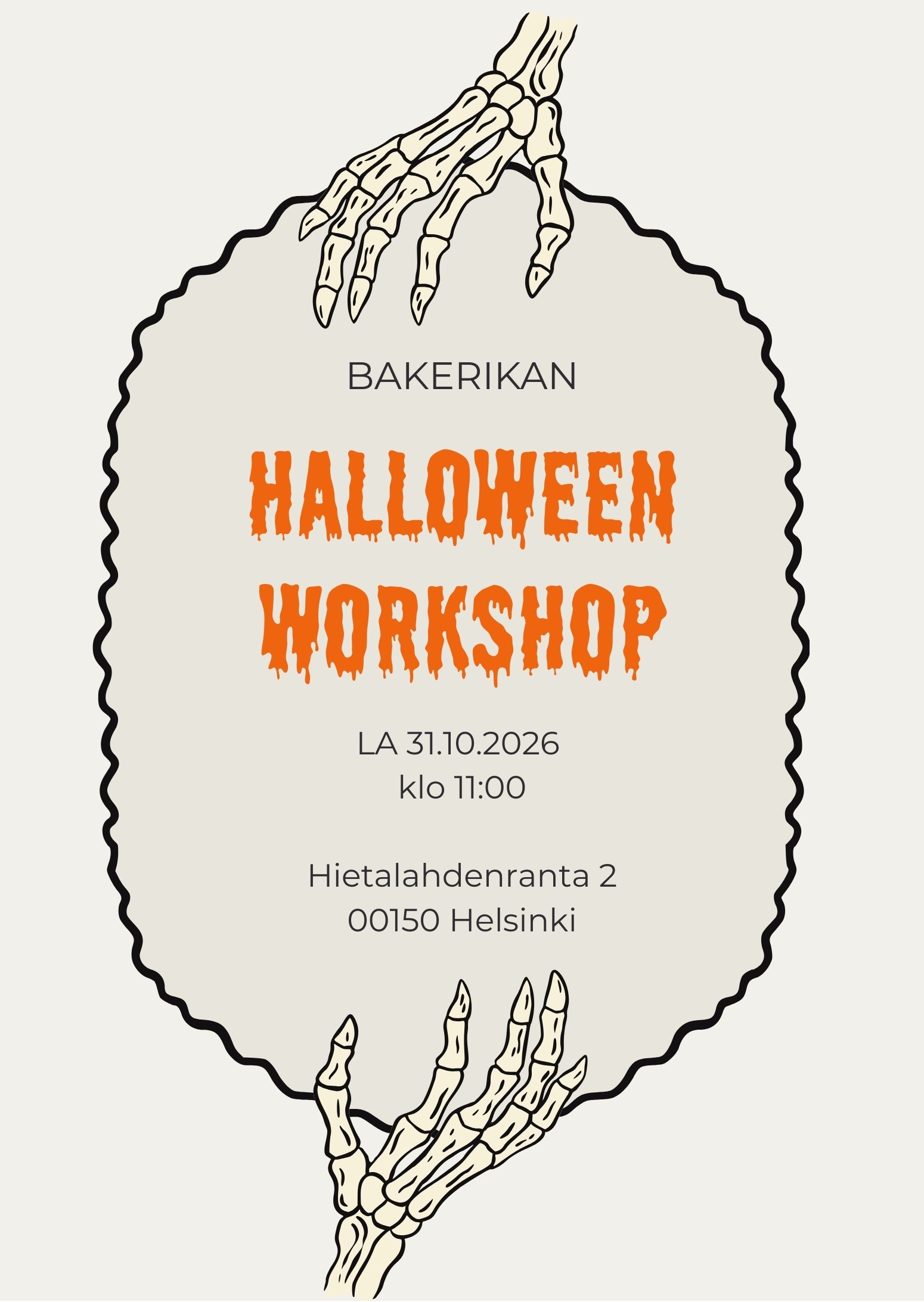 Workshop järjestetään lauantaina 31.10.2025 klo 11:00 Bakerikan tunnelmallisessa tilassa Telakkarannassa. Tapahtuman vetää Bakerikan perustaja, Erika Poussa, joka ohjaa sinut vaihe vaiheelta kakun koristelun saloihin.