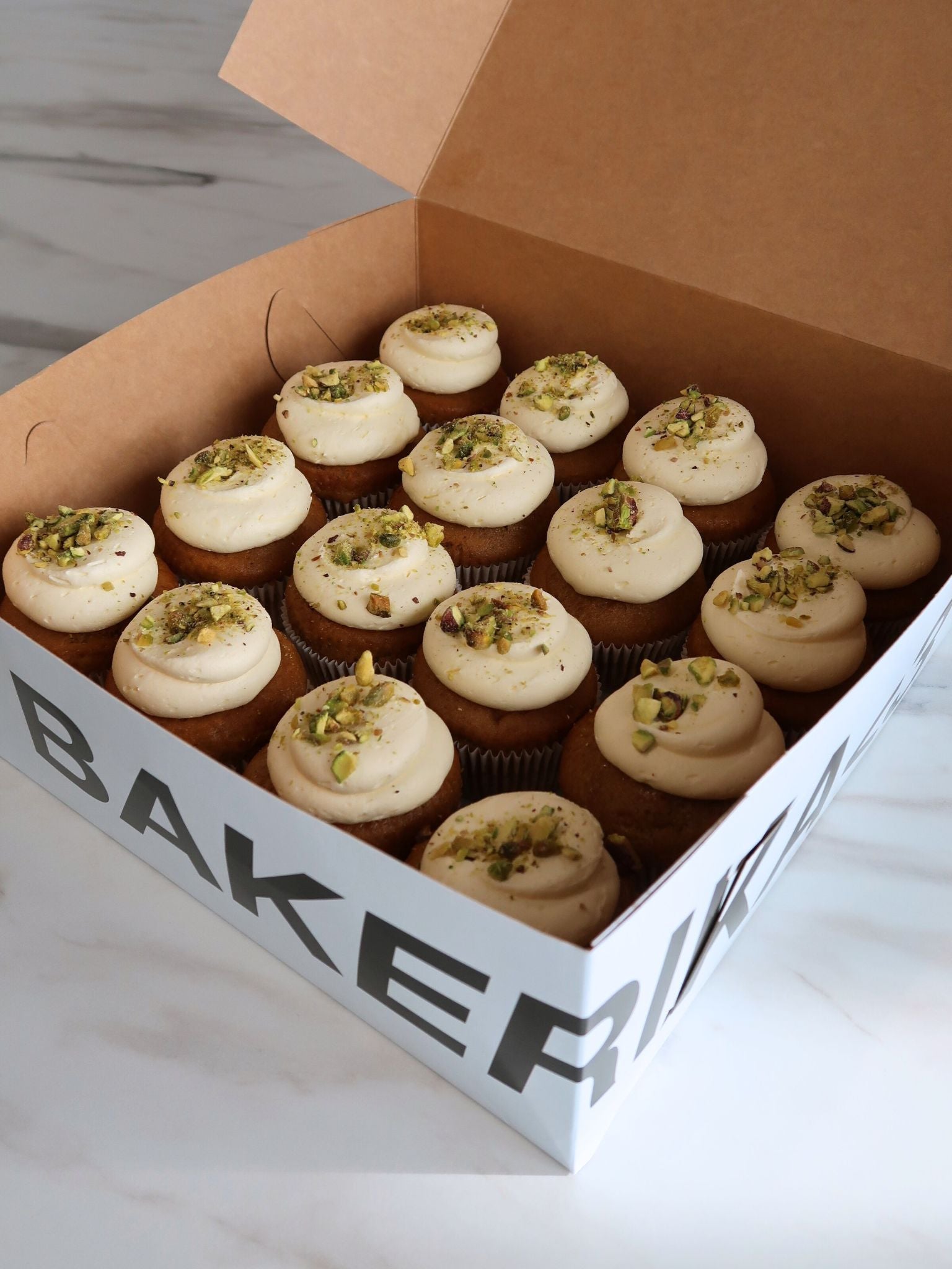 kaurajuoma (vesi, gluteenitonkaurajauho(10 %), kasviöljyt (rapsi ja rypsi), happamuudensäätöaine (kaliumfosfaatit), kalsium, suola, jodi, vitamiinit (riboflaviini (B2), B12 ja D2)), sokeri, rapsiöljy, laktoositon voi (pastöroitu kerma, suola), Philadelphian Laktoositon Original (maito, kerma, suola, stabilointiaineet (johanneksenleipäpuujauhe), hapate), pistaasipähkinää, tomusokeri (sokeri, paakkuuntumisenestoaine (trikalsiumfosfaatti)), porkkana, omenaviinietikka, kaneli, kardemumma.